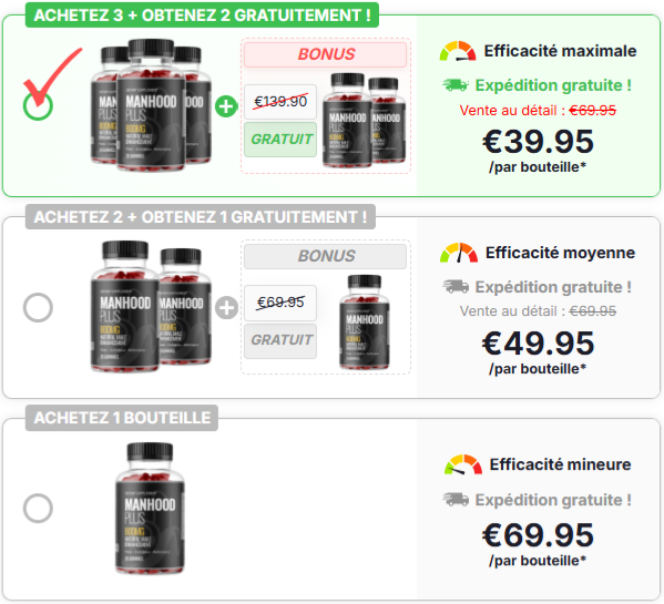 Économisez 42 % sur Manhood Plus et Obtenez 2 Bouteilles Gratuites + Livraison Gratuite