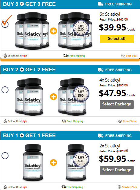 The scam is simple: they use the product name and similar packaging, but the contents are just fillers or substances that might even be harmful. To avoid the scam, the golden rule is: the original Sciaticyl is only sold through the official website. Besides ensuring you get the real formula that’s been tested, only the official site grants you the refund guarantee and bundle discounts. If you see a “miracle” price somewhere else, be immediately suspicious. Don’t gamble with your health just to save a few dollars.